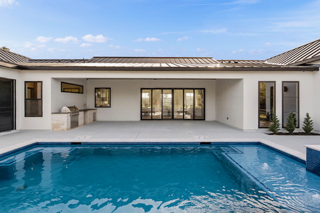 Outdoor-Indoor Flow: Large sliding glass doors blur the lines between spaces